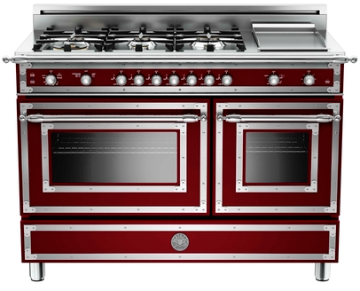 Bertazzoni Heritage Series 48" Free Standing Gas Ranges-Burgundy with 5.8 cu. ft. total capacity, 6 burners and telescopic glide shelvesRead More
