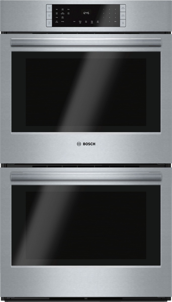The Bosch Wall Oven Installs Flush and Features a QuietClose® Door. 12 specialized cooking modes in upper cavity - gourmet cooking made easy. Thermal cooking with bake, broil, roast and warm in lower cavity.Read More