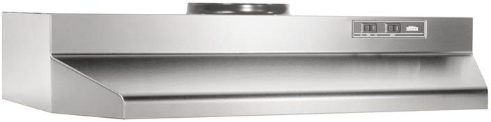 The 42000 series offers an effective and durable under-the-cabinet hood solution for vertical discharge installations. The range hood is designed for 7 in. round vertical duct attachment. The hood comes in a variety of appliance matching colors and widths, and features a fan designed for years of trouble free service, an easy to clean grease filter, a protective lamp lens that distributes light evenly over the cook-top and control switches for fan speed and light activation. Includes built-in 7 in. duct adapter.Read More