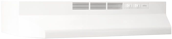 The Broan 40000 series is made for a wide range installations and comes in a variety of appliance matching colors and widths. The durable under cabinet hood installs as 3-1/4 in. x 10 in. ducted opening only and ducts either vertically or horizontally. The hood features a fan designed for years of trouble free service, an easy to clean grease filter, a protective lamp lens that distributes light evenly over the cook-top and control switches for fan speed and light activation. Includes duct adapter with built-in damper.Read More
