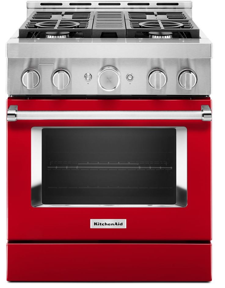 Empower your creativity with a 30-inch KitchenAid® Commercial Style Range with 4 burners. This gas range features two versatile 20,000 BTU Ultra Power™ Dual-Flame Burners with the power and precision needed to successfully sear, simmer, stir-fry and saute´. Even-Heat™ True Convection helps you achieve more consistent baking and roasting.Read More