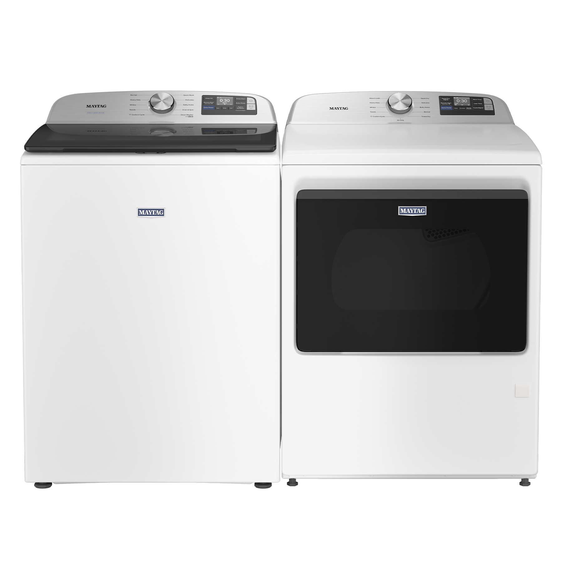 Maytag® White Top Load Laundry Pair with a 5.2 cu. ft. capacity smart top load washer and a 7.4 cu. ft. capacity smart front load electric dryer.Read More
