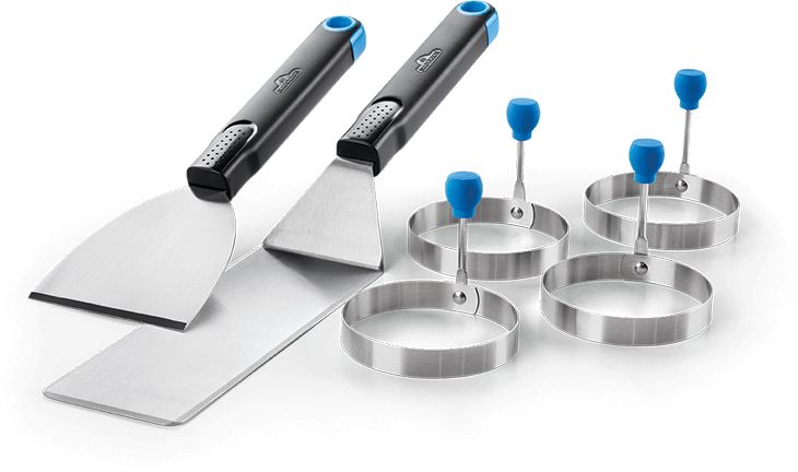 Use your barbecue to grill up gourmet breakfasts, not just delightful dinners. The Napoleon Breakfast Toolset with four egg rings comes with a commercial-grade spatula, a chopper-scraper for dicing and scraping griddles and planchas clean, and four egg rings with folding handles for compact storage.Read More
