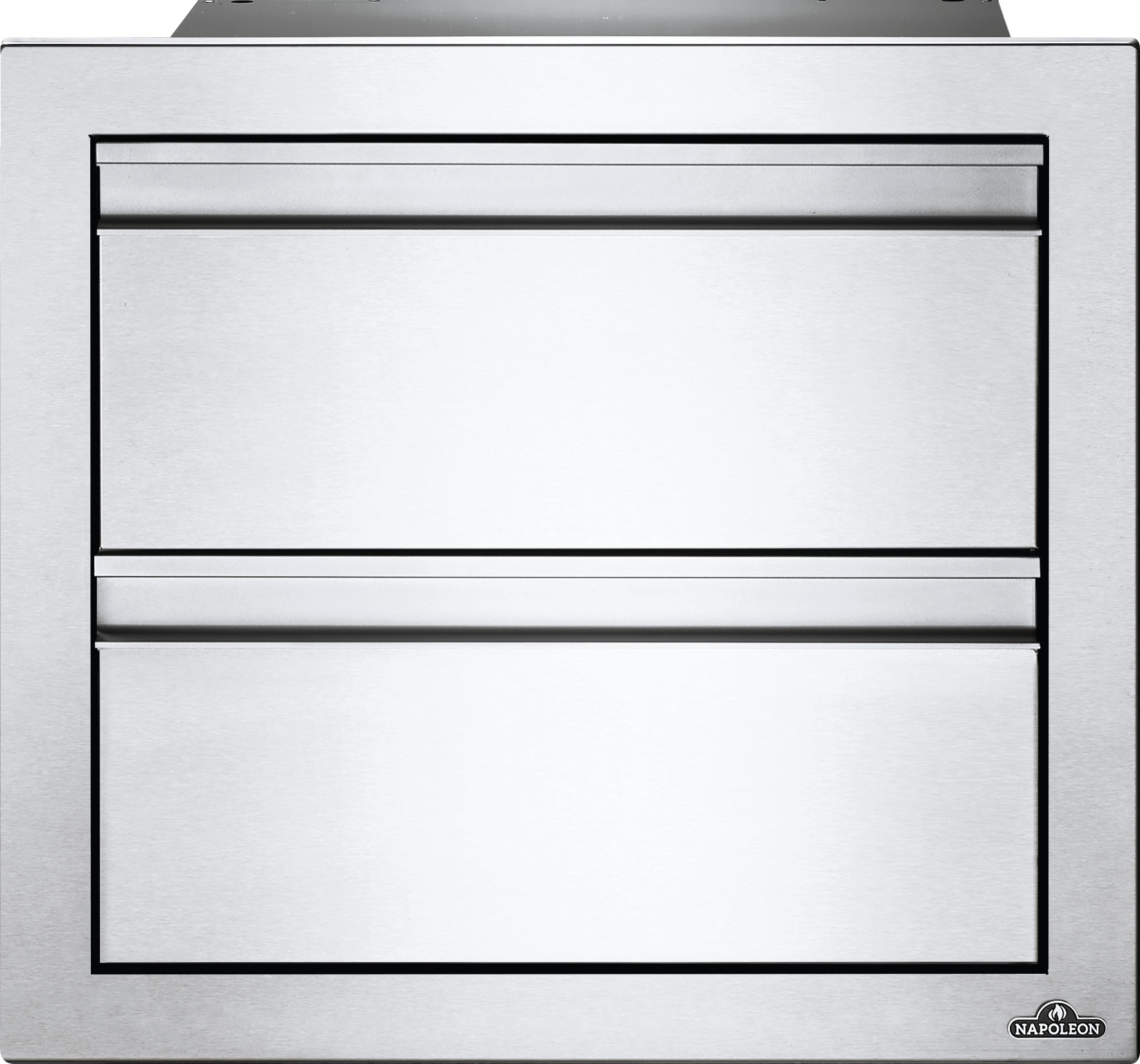Creating your own custom grill island has never been easier with Napoleon's Built-In Components. Every great outdoor kitchen needs storage; this spacious double drawer is 18" x 16", great for storing tools and spices. It features stainless steel construction, soft closing hardware, seamless trim, and anodized aluminum handles.Read More