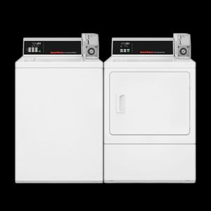 Speed Queen® White Laundry Pair with a 3.2 Cu. Ft. capacity top load commercial coin-op washer and a 7.0 Cu. Ft. capacity front load commercial coin-op electric dryer.Read More