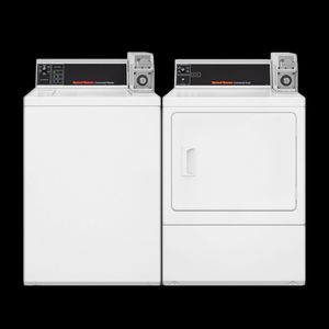 Speed Queen® White Laundry Pair with a 3.19 Cu. Ft. capacity top load commercial coin-op washer and a 7.0 Cu. Ft. capacity front load commercial coin-op electric dryer.Read More