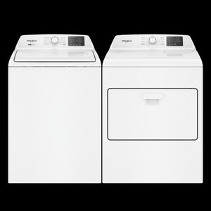 Whirlpool® White Top Load Laundry Pair with a 4.3 cu. ft. capacity top load washer and a 7.0 cu. ft. capacity front load electric dryer.Read More